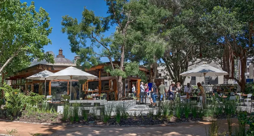 Right in the heart of Cape Town, this open‑air restaurant is perfect for families. Long wooden tables, shaded seating, and a menu full of comforting classics make it easy to settle in for hours. Squirrels dart around the garden, kids explore the lawns, and the atmosphere is relaxed and festive.